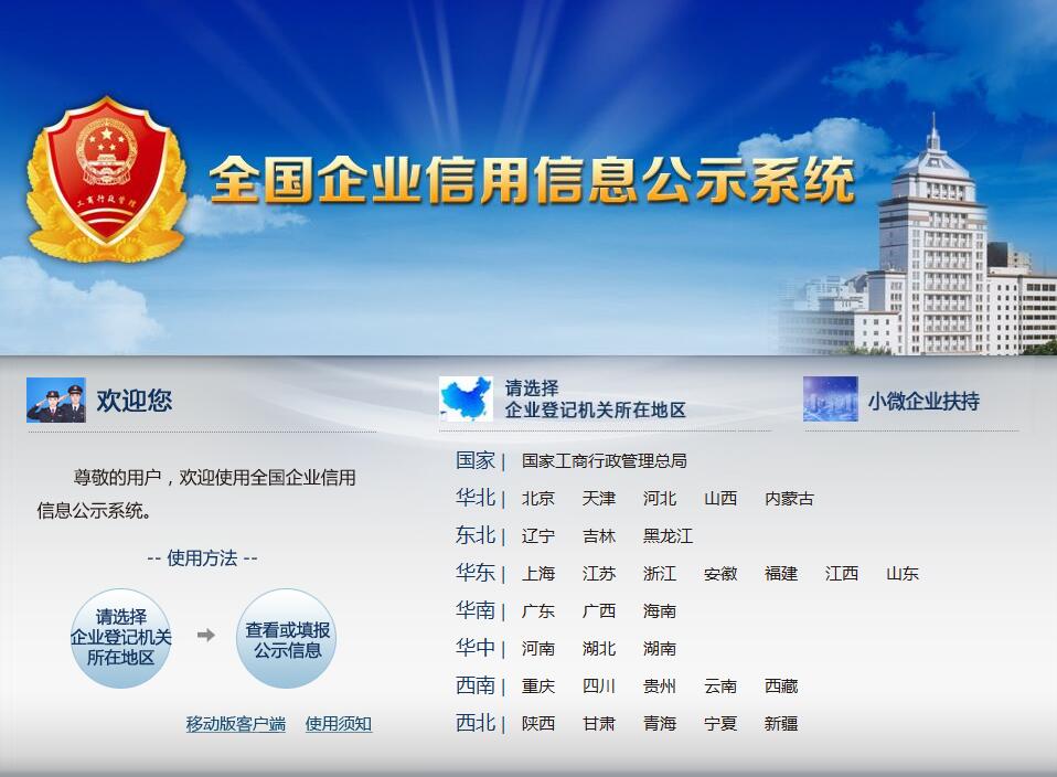 第一步:打開全國企業(yè)公示系統(tǒng) 點(diǎn)擊網(wǎng)址http://gsxt.saic.gov.cn/ 或搜索引擎搜索企業(yè)公示 選擇有g(shù)ov后綴的進(jìn)入