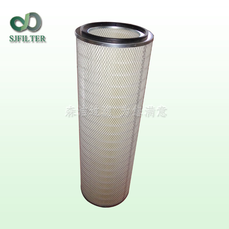 1、除塵濾筒采用進(jìn)口聚酯纖維作為濾料,把一層亞微米級(jí)的超薄纖維粘附在一般濾料上,并且在該粘附層上纖維間的排列非常緊密,極小的篩孔可把大部分亞微米級(jí)的塵粒阻擋在濾料表面;